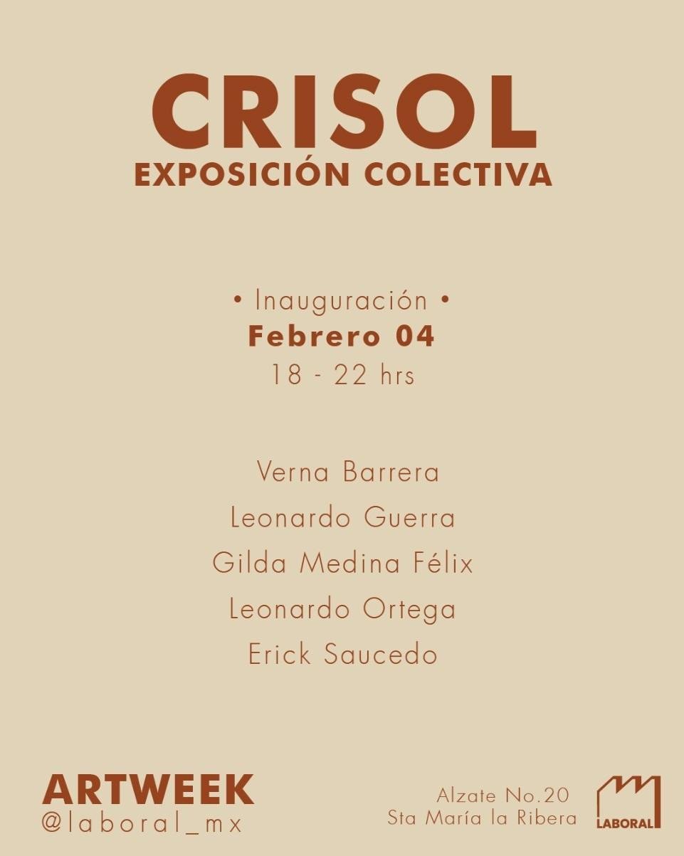 La inauguración tendrá lugar durante la Semana del Arte, el 4 de febrero a las 6 pm, no te pierdas esta oportunidad de unirte a nosotros en este momento especial. Estamos ansiosos por compartir “CRISOL” con ustedes y celebrar nuestro primer año de LABORAL.