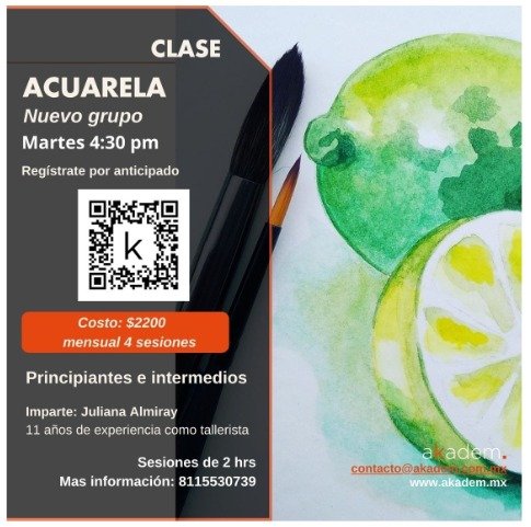 Taller de Acuarela¿Estás iniciándote en la acuarela, quieres mejorar tus habilidades o aún no has comenzado? Inscríbete al nuevo taller